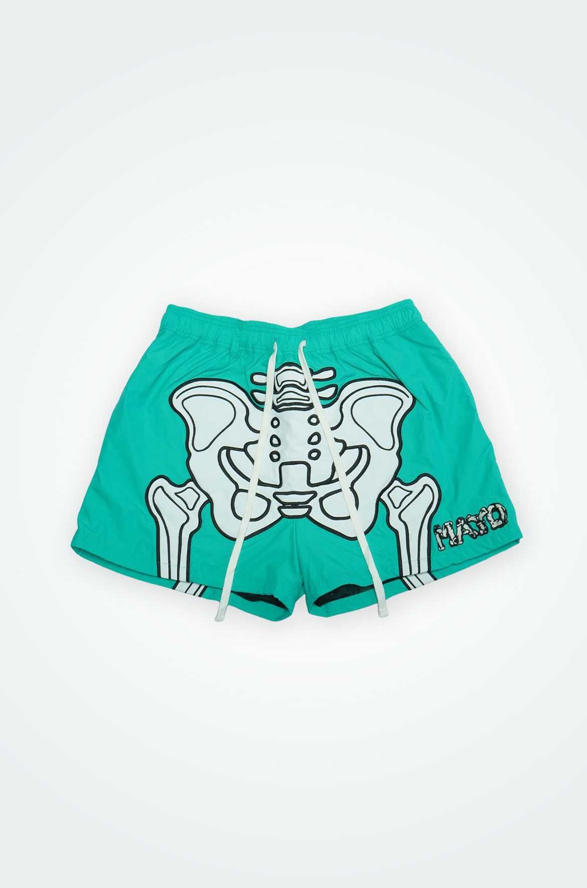 今季発売されたMAYO BONES Embroidery Shortsのバックデザインをフロントにもあしらった"BONE SHORTS"がDROP。アノラックジャケットと同素材のナイロンショーツで程よく股上が深めに作ってある仕様になっておりリラックスして着用可能だ。