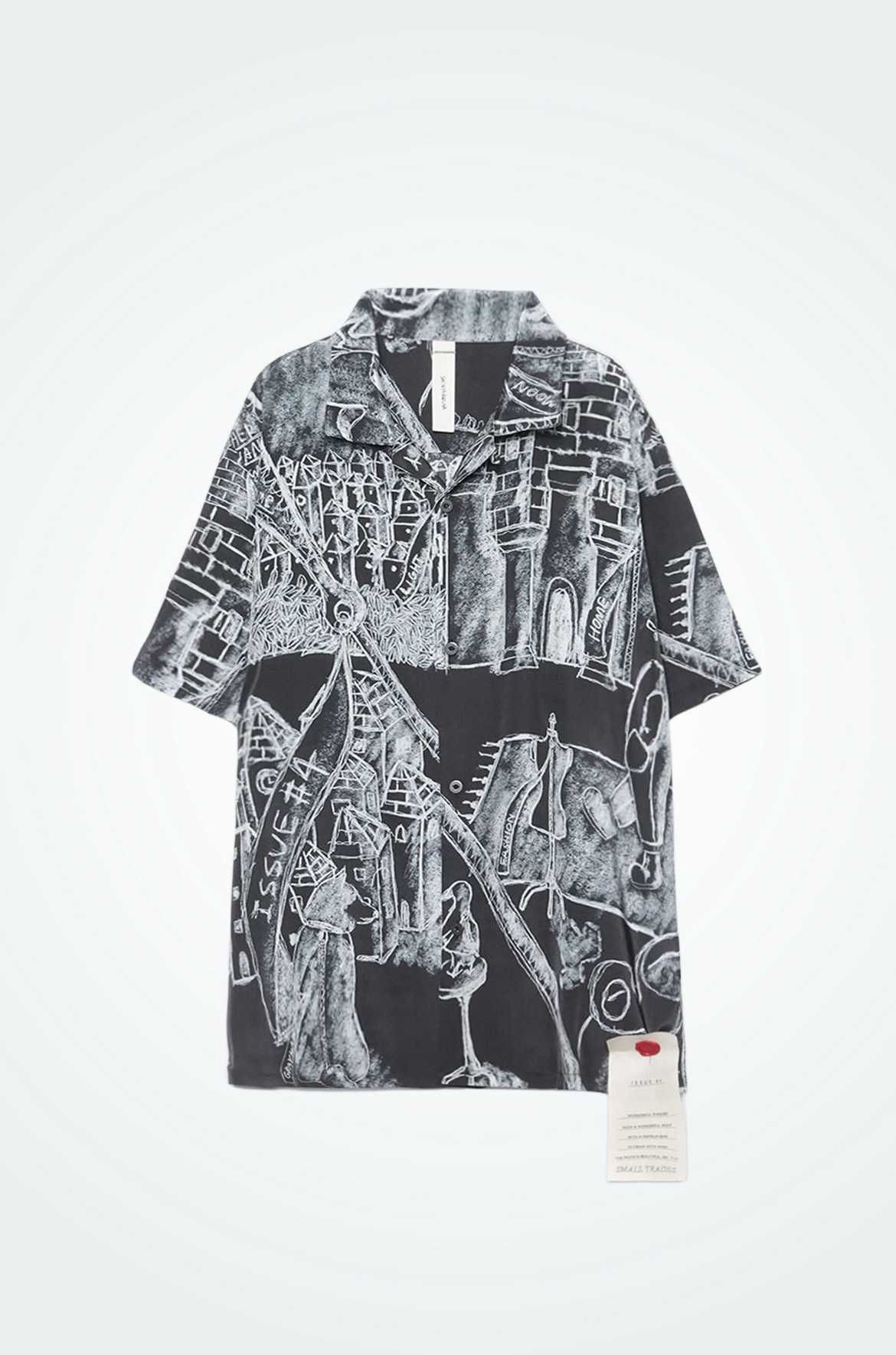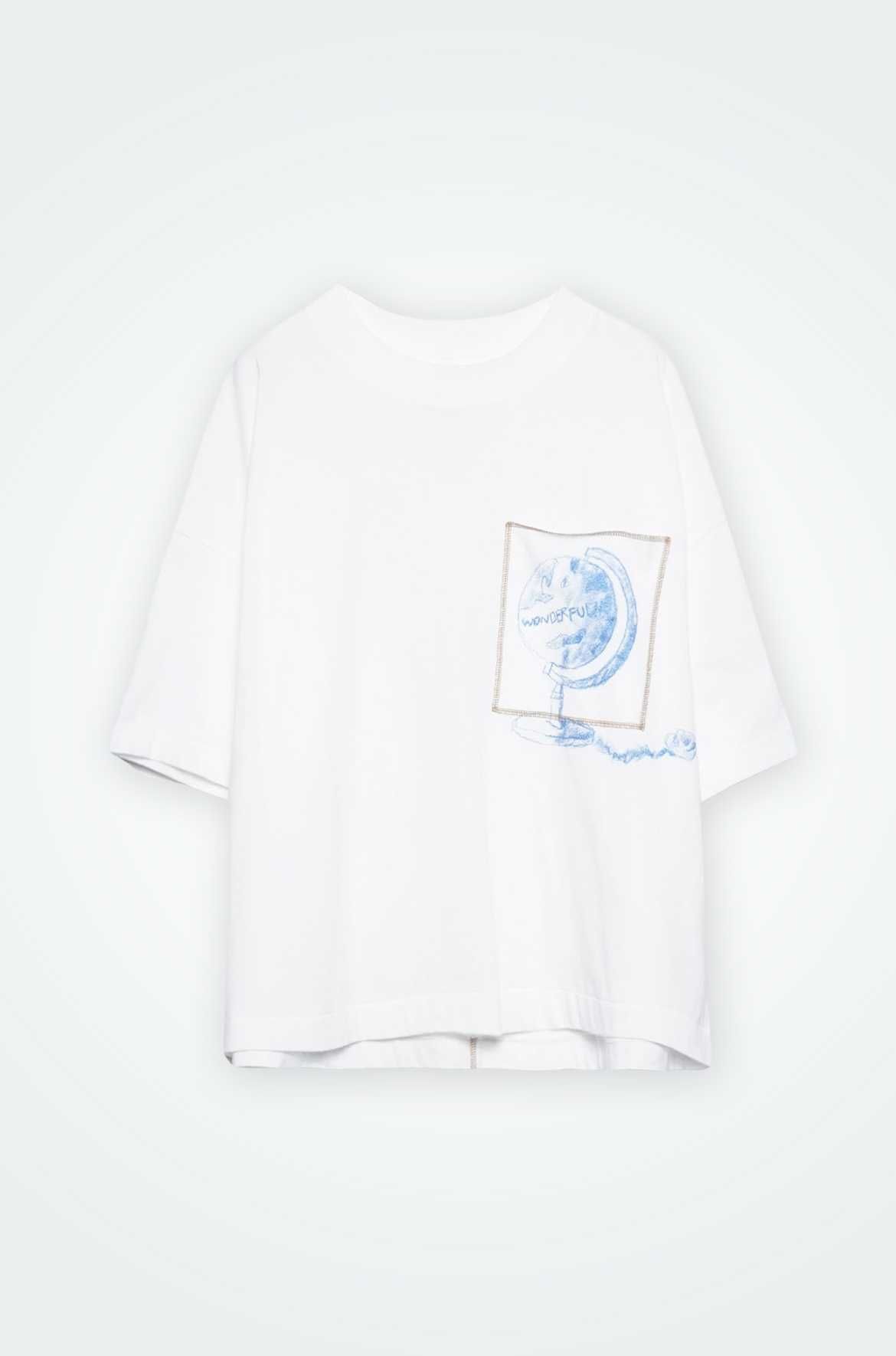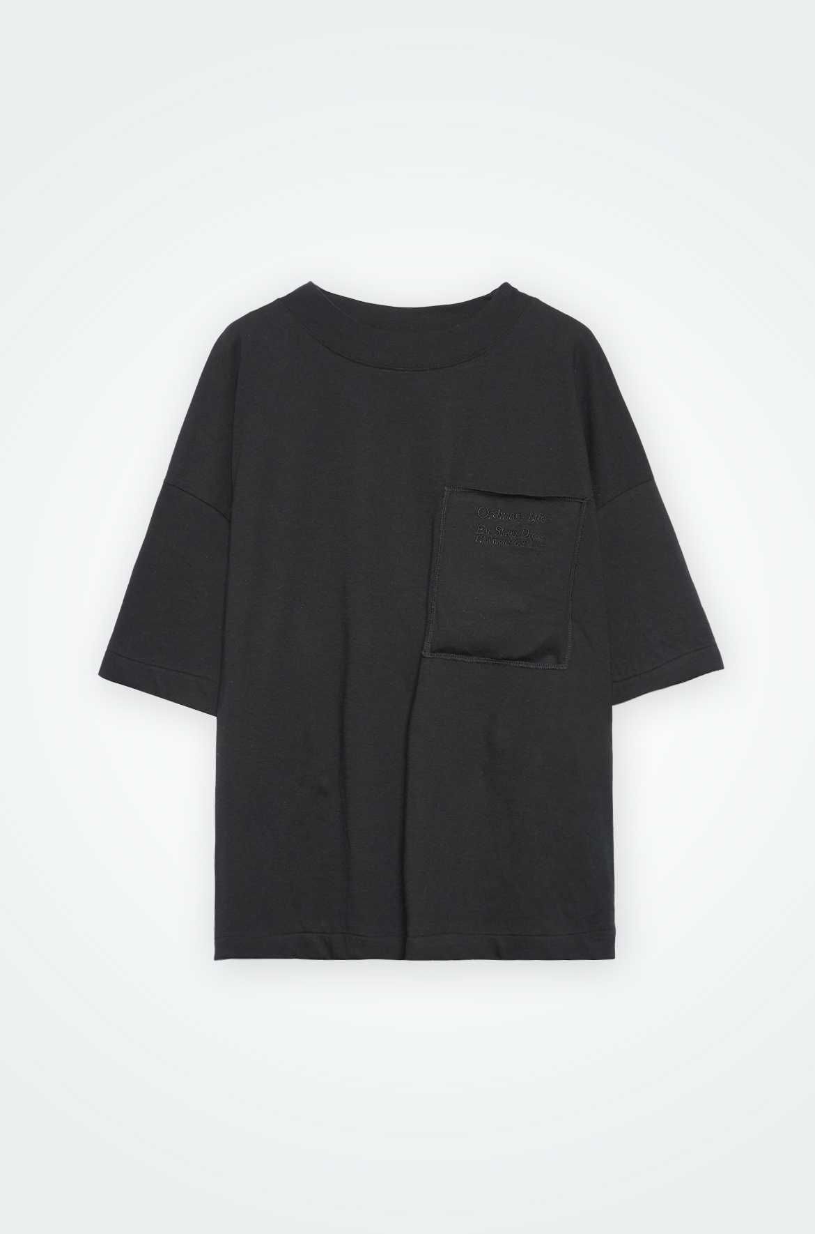 "絵に描いたような素敵な情景の世界を描きたい"という思いを表現した胸ポケットが特徴のショート丈の半袖Tシャツとなっている。額縁みたく見えるようにロックステッチに、デザイナーのハンドドローイングと額縁みたく見えるようにロックステッチを施している。