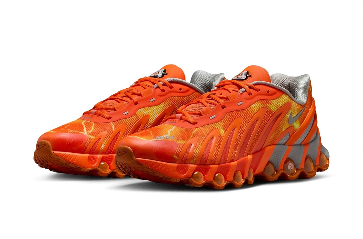 Known for their irreverent humor and deep reverence for 90s British subculture, Palace brings a striking visual update to Nike’s latest technology. The collaboration features an archive-inspired lightning bolt graphic covering the entire upper, creating a bold aesthetic that is instantly recognizable.