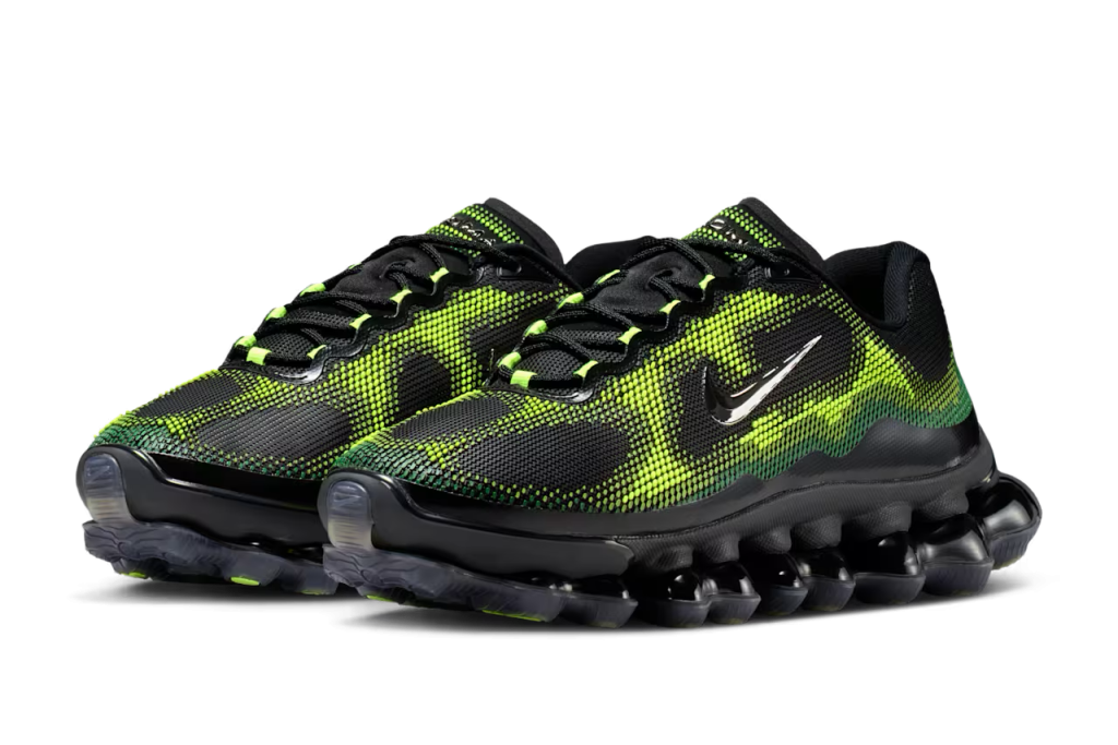 Nike is set to redefine its cushioning legacy with the Air Liquid Max, dropping on Air Max Day 2026. Inspired by the vibrant warning colors of the poison dart frog, this silhouette features a “Radiant Green” and “Apple Green” palette over a heavy black base, creating a high-contrast, aggressive look.