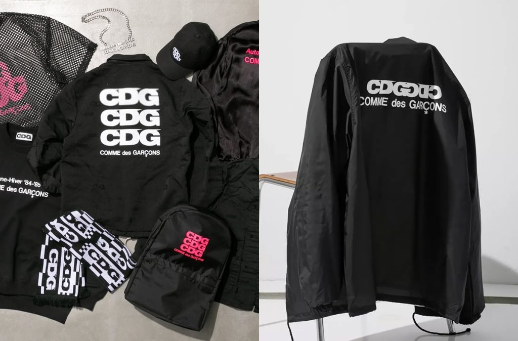 The core of the CDG line lies in the versatile expression of its branding. On staples like the coach jackets and hoodies, the scale and placement of the logo are rearranged to give each piece a fresh personality.