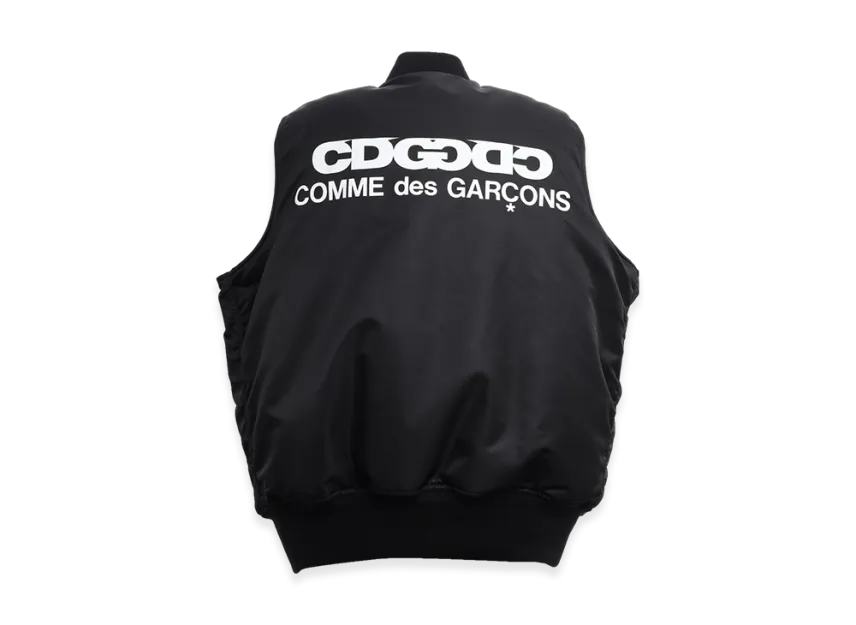 The CDG logo also plays a pivotal role in the brand’s high-profile partnerships. The ongoing collaboration with Alpha Industries is a cornerstone of the lineup. By adding bold logo prints to rugged liners and MA-1 flight jackets, CDG reinterprets fixed military tropes through a high-fashion lens.