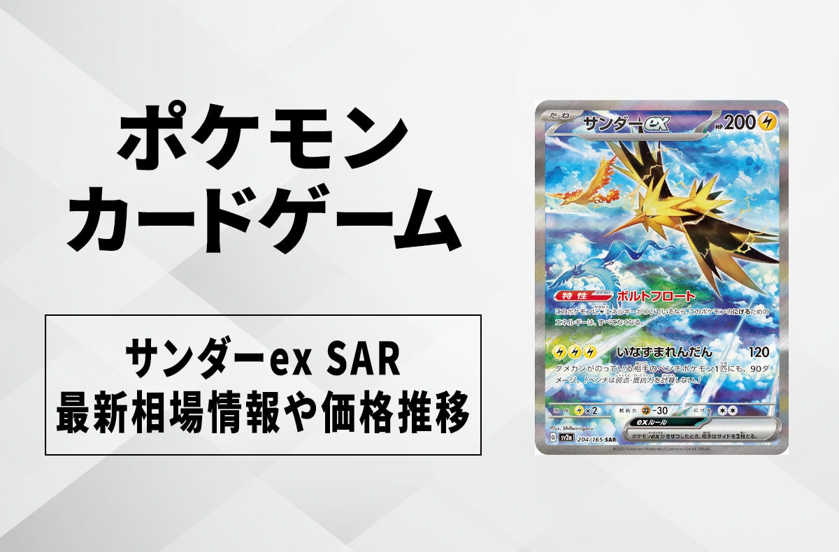 『ポケモンカードゲーム』(ポケカ)より、「サンダーex SAR」の買取価格と最新相場、値段推移を紹介。大きな変動があり次第更新予定。 目次