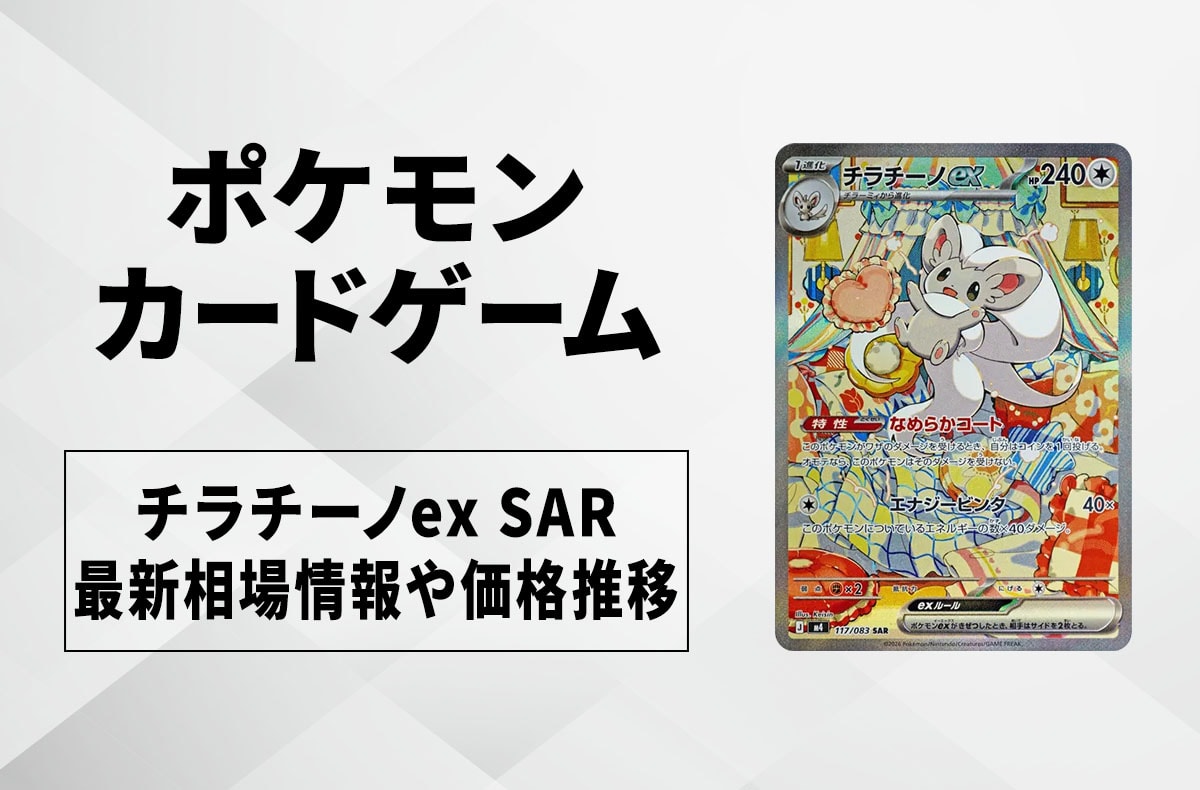 『ポケモンカードゲーム』(ポケカ)より、「チラチーノex SAR」の買取価格と最新相場、値段推移を紹介。大きな変動があり次第更新予定。 目次