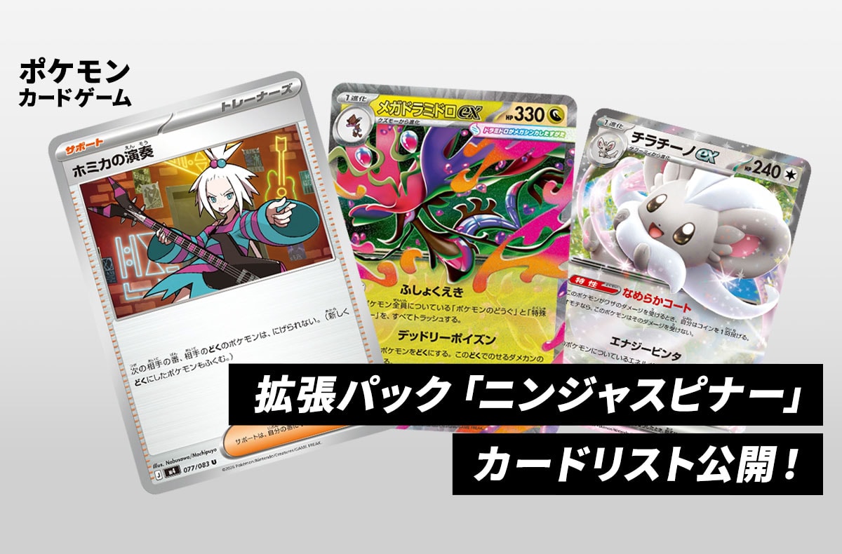 「ニンジャスピナー」のカードリスト判明!「ホミカの演奏」や「メガドラミドロex」など収録カードが公開!【ポケカNEWS】