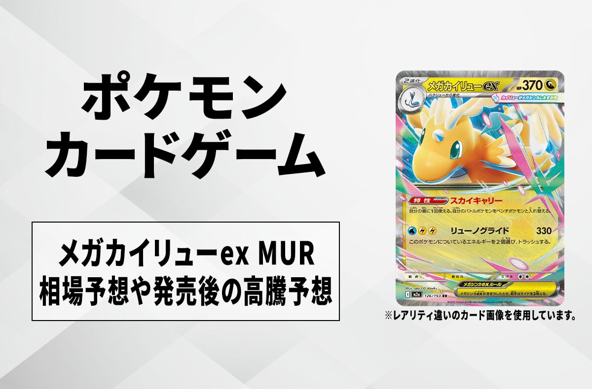 『ポケモンカードゲーム』(ポケカ)より、「メガカイリューex MUR」の相場予想や買取予想、発売後の高騰の考察について紹介。実際の相場情報については、発売後に更