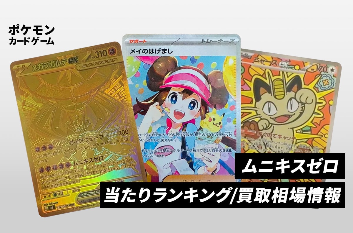 『ポケモンカードゲーム』(ポケカ)より、「ムニキスゼロ」の収録カードをはじめ、当たりランキングや買取価格情報、封入割合、販売店舗などを紹介している。