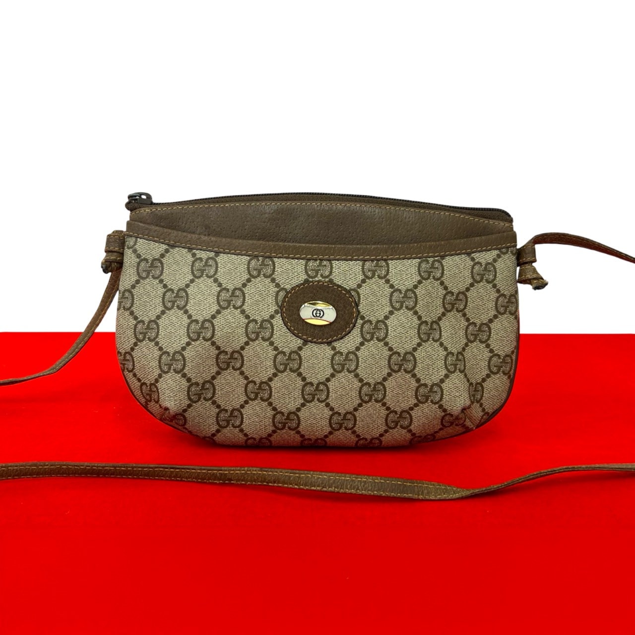 GUCCI グッチ GG ロゴ 金具 PVC レザー ショルダーバッグ ブラウン