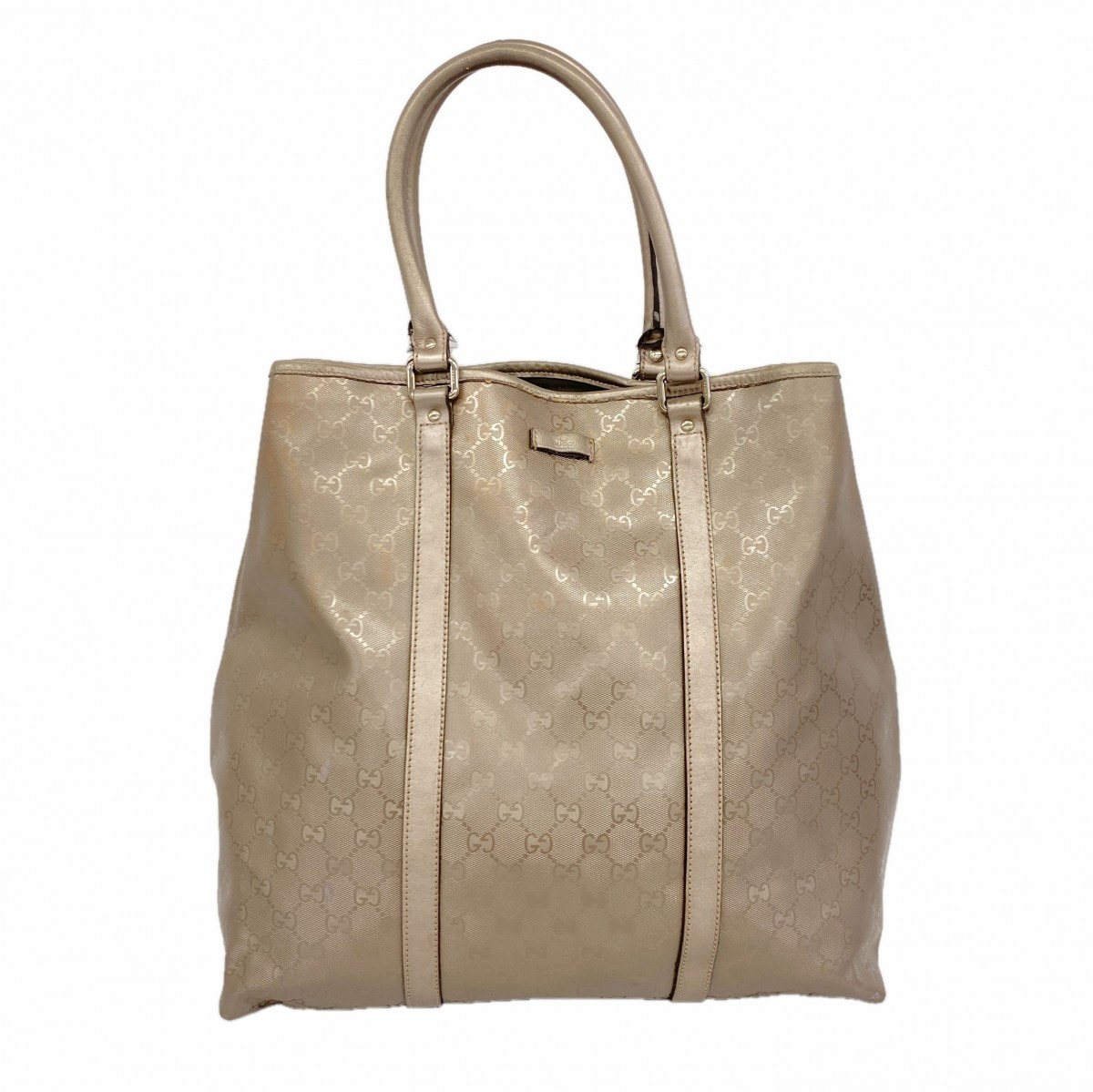 【6db1637-k】グッチ トートバッグ GGインプリメ 223668 PVC メタリックグレージュ シルバー金具【中古】レディース