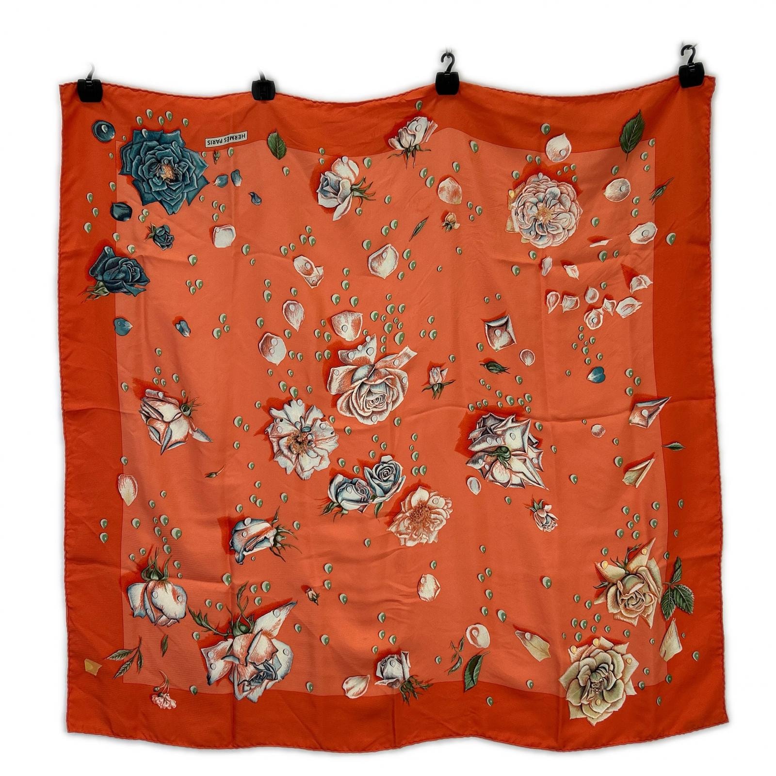 エルメス オレンジ 薔薇の雫 シルク カレ90 スカーフ