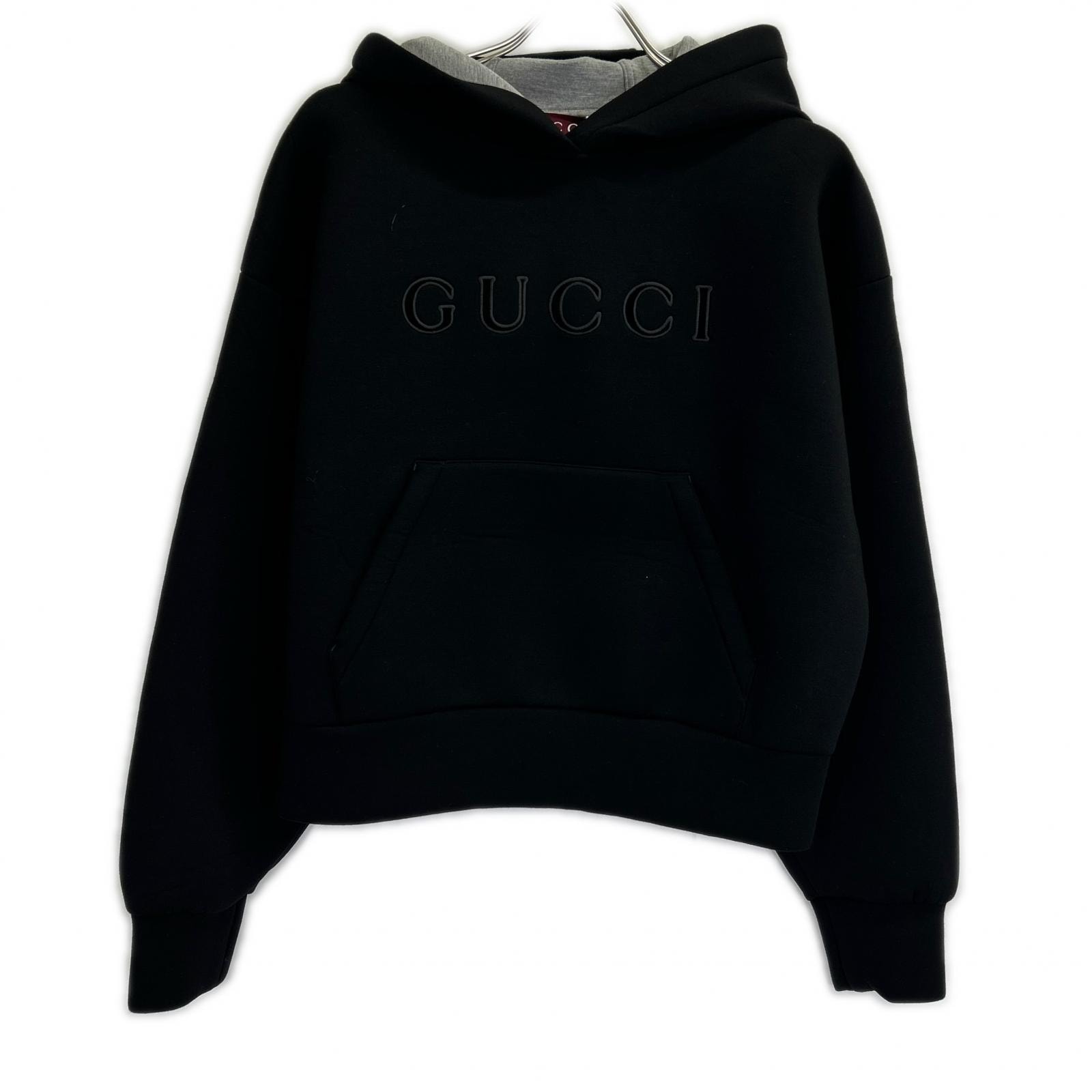 グッチ 新品同様 国内正規 798544 XJHMQ ブラック ビスコース フロントロゴ ジャージースウェットフーディ S
