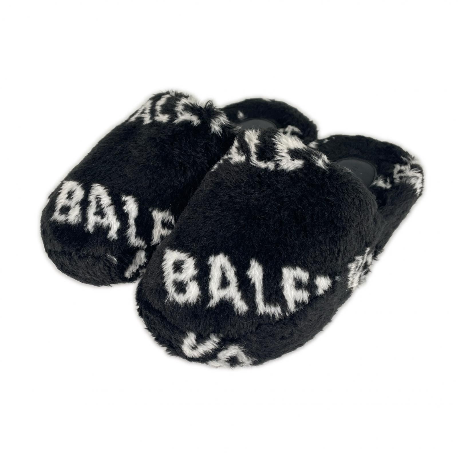 美品 BALENCIAGA バレンシアガ 秋冬 AW サンダル フェイクファー ブラック レディース 22.5【古着】【中古】