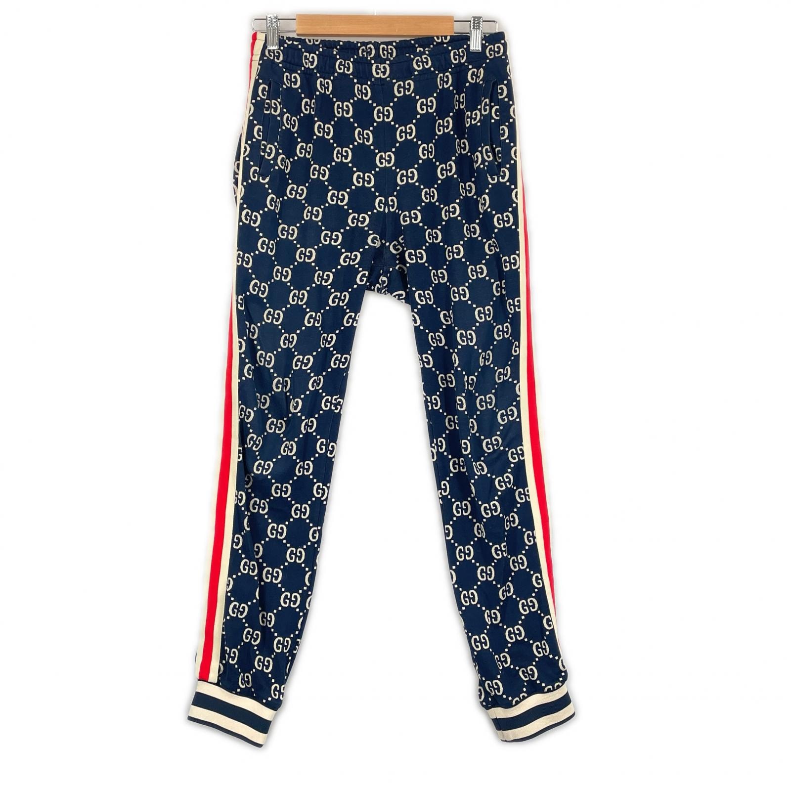 GUCCI グッチ テクニカルジャージ GG柄 X9V05 春夏 SS ジョガーパンツ コットン ネイビー メンズ M【古着】【中古】