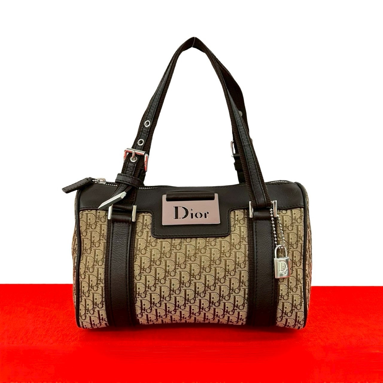 Christian Dior ディオール ストリートシック トロッター キャンバス レザー ボストンバッグ ブラウン