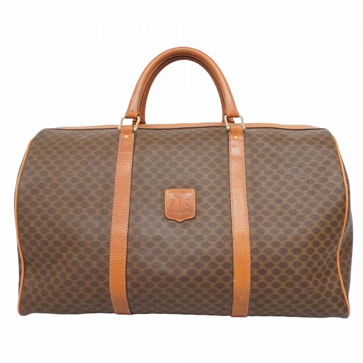 【6dc3437-k】セリーヌ ボストンバッグ マカダム PVC ブラウン ゴールド金具【中古】メンズ レディース ユニセックス