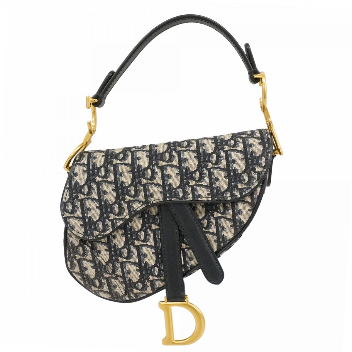 【6dd4370-h】クリスチャンディオール ハンドバッグ オブリーク サドル キャンバス ネイビー ゴールド金具【中古】レディース