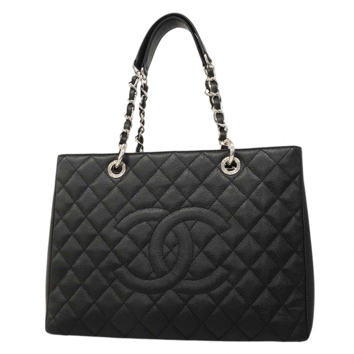 【6dd4109】シャネル チェーントート マトラッセ キャビアスキン ブラック シルバー金具【中古】レディース