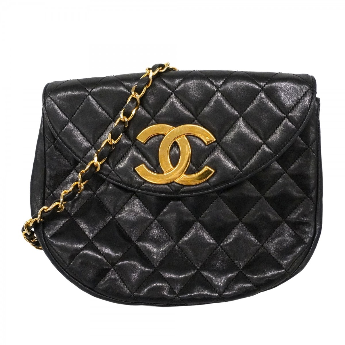 【6dd4110-k】シャネル ショルダーバッグ マトラッセ チェーンショルダー ラムスキン ブラック ゴールド金具【中古】レディース