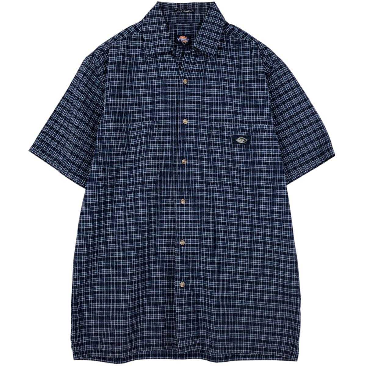 古着 ディッキーズ Dickies チェック柄 オープンカラー 半袖 ワークシャツ ボックスシャツ メンズM相当/eaa637817