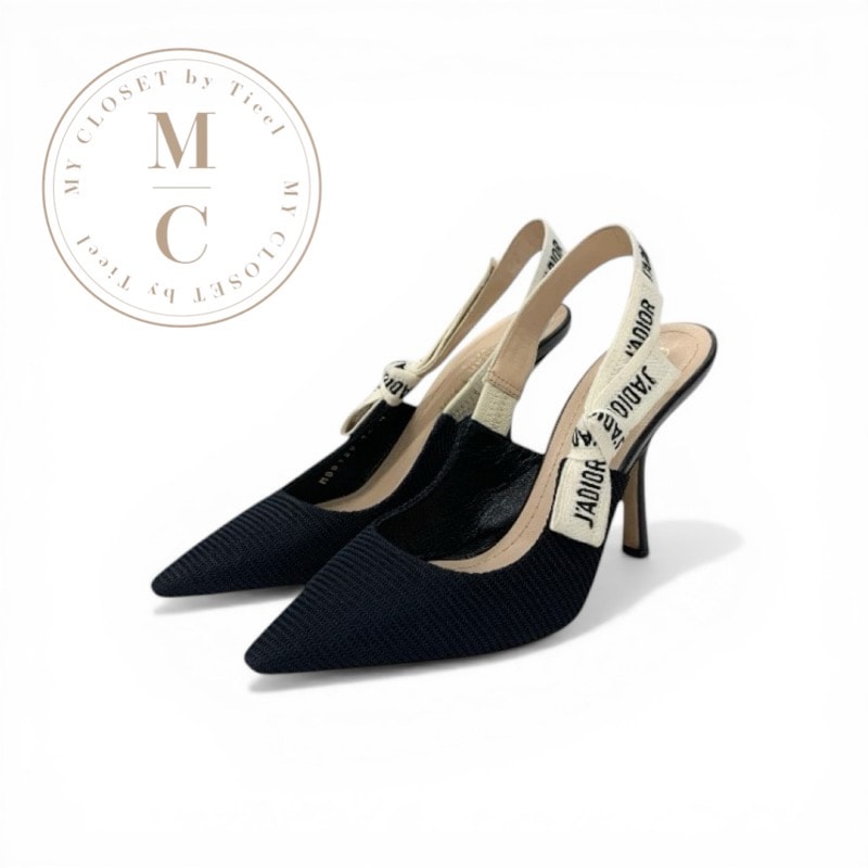 クリスチャンディオール CHRISTIAN DIOR J'ADIOR パンプス 靴 シューズ ファブリック ブラック ホワイト スリングバック