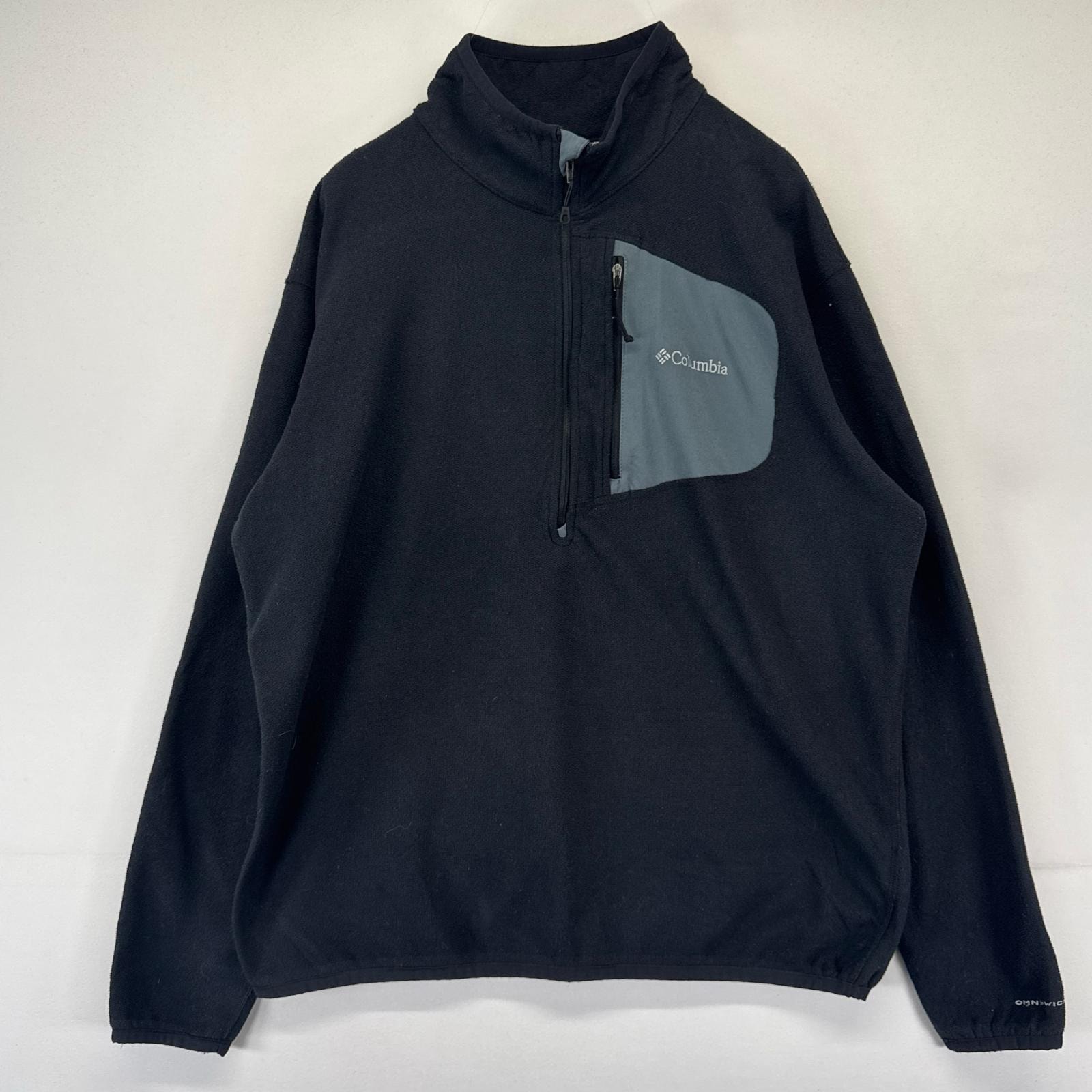 古着 コロンビア Columbia フリース ジャケット ハーフジップ プルオーバー 刺繍 アウトドア L ブラック系 メンズ