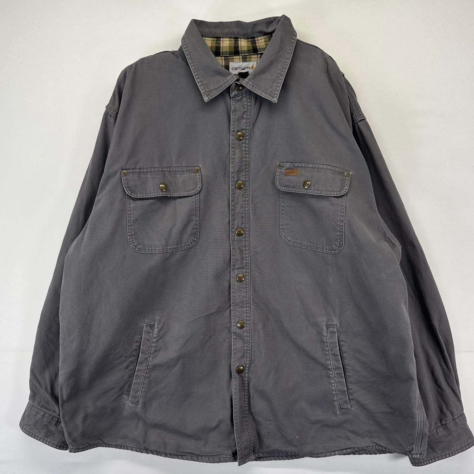 古着 カーハート Carhartt ダック ジャケット ワーク シャツ スナップボタン 胸ポケット ワンポイントロゴ 2XL グレー系 メンズ