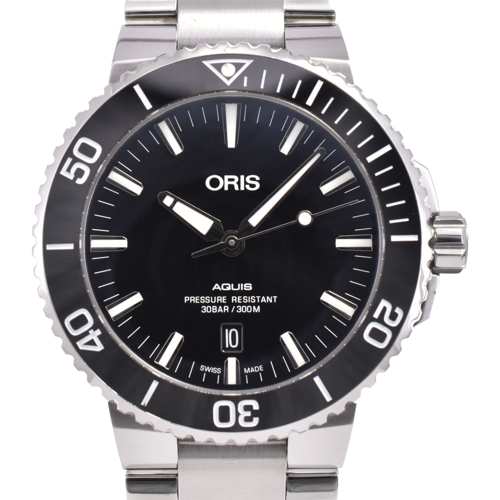 オリス ORIS 01 733 7730 4134 アクイス デイト ブラック 自動巻き メンズ 美品 箱・保証書付き 腕時計 D#147101