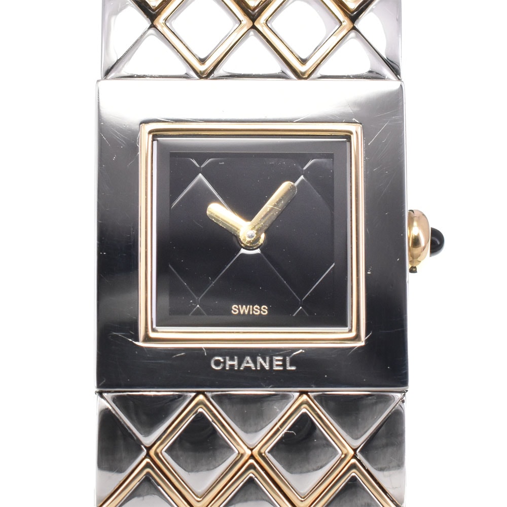 シャネル CHANEL H0475 マトラッセ SS/GP ブラック クォーツ レディース 良品 腕時計 D#146744