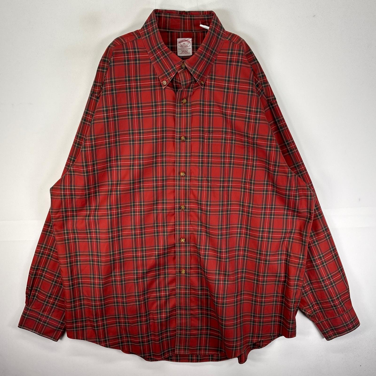 古着 ブルックスブラザーズ Brooks Brothers 長袖シャツ ボタンダウン 胸ポケット XL レッド系 チェック メンズ