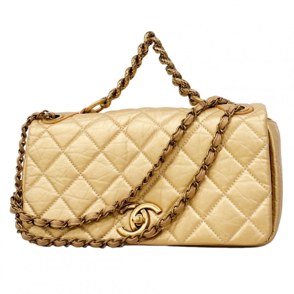 【6dd4461-k】シャネル ハンドバッグ マトラッセ チェーンショルダー カーフスキン ゴールド ゴールド金具 2wayバッグ【中古】レディース