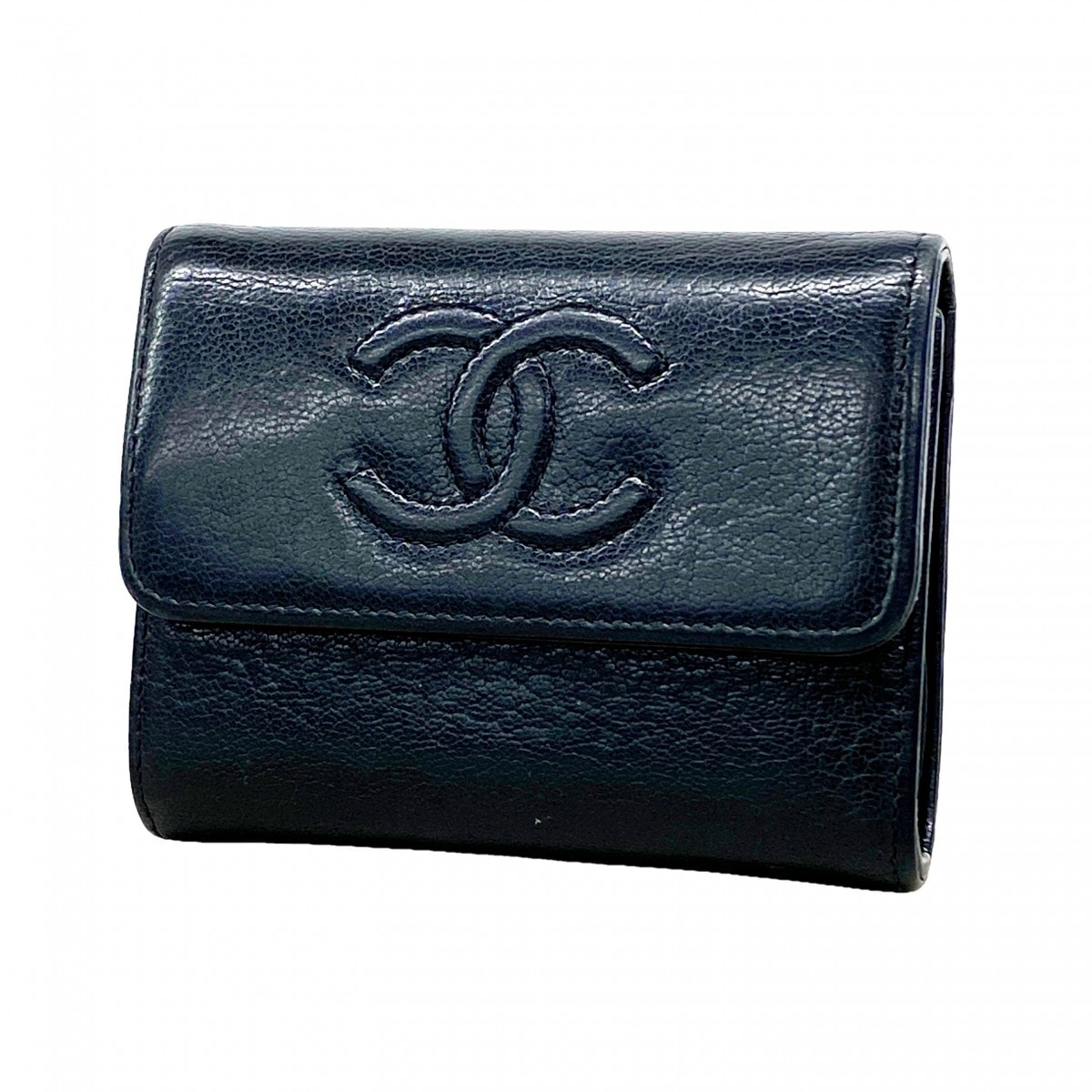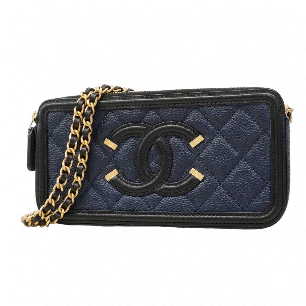 【6dd4474-h】シャネル ショルダーバッグ チェーンショルダー CCフィリグリー キャビアスキン ネイビー ブラック シャンパンゴールド金具【中古】レディース