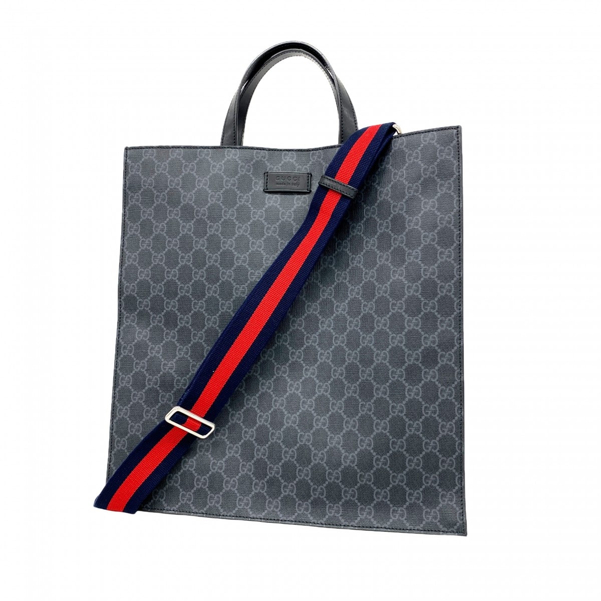 【6dd4457-k】グッチ トートバッグ GGスプリーム 495559 PVC ブラック シルバー金具 2wayバッグ【中古】メンズ