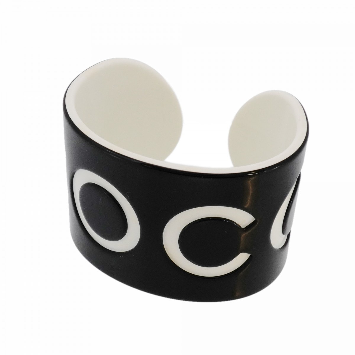 【6jdb0444-k】シャネル バングル COCOロゴ プラスチック ホワイト ブラック【中古】レディース