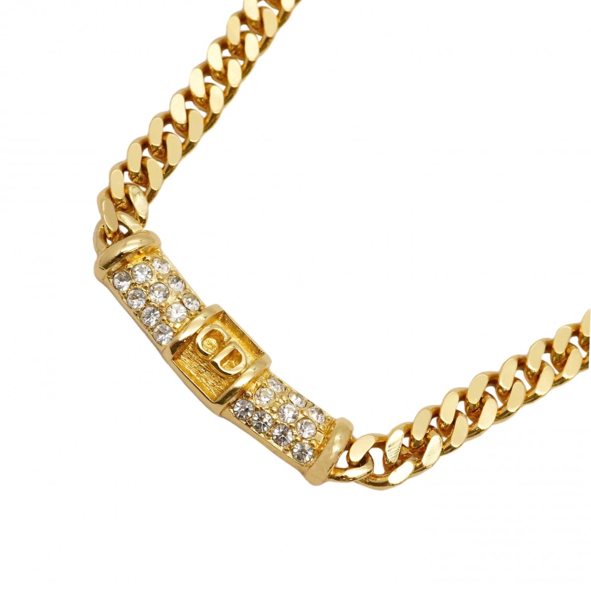 【6jdb0433-k】クリスチャンディオール ネックレス CDロゴ GPメッキ ラインストーン ゴールド【中古】レディース