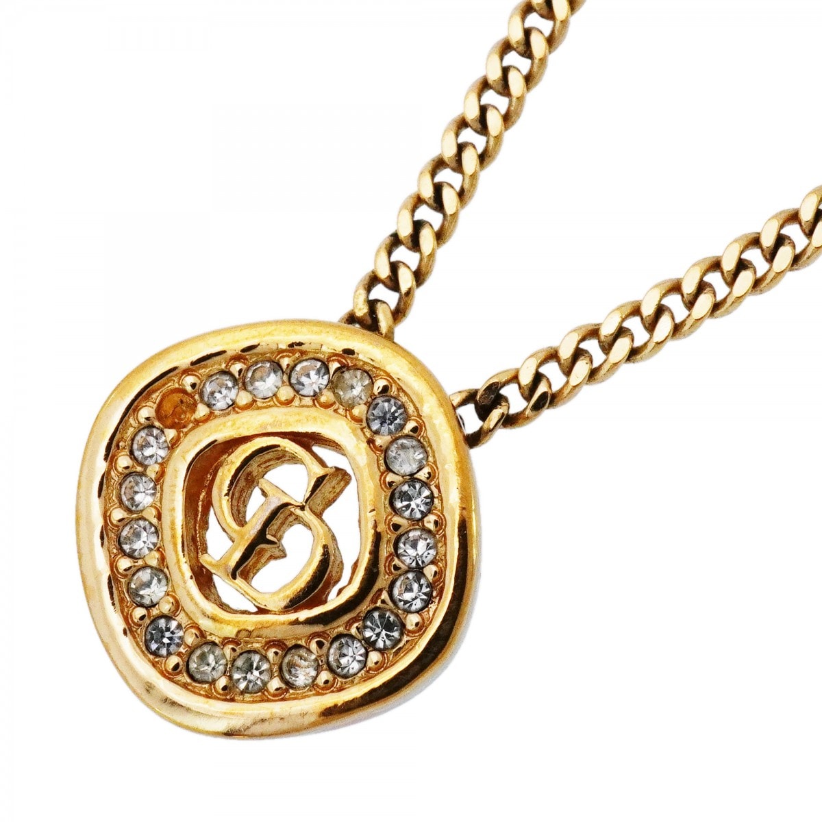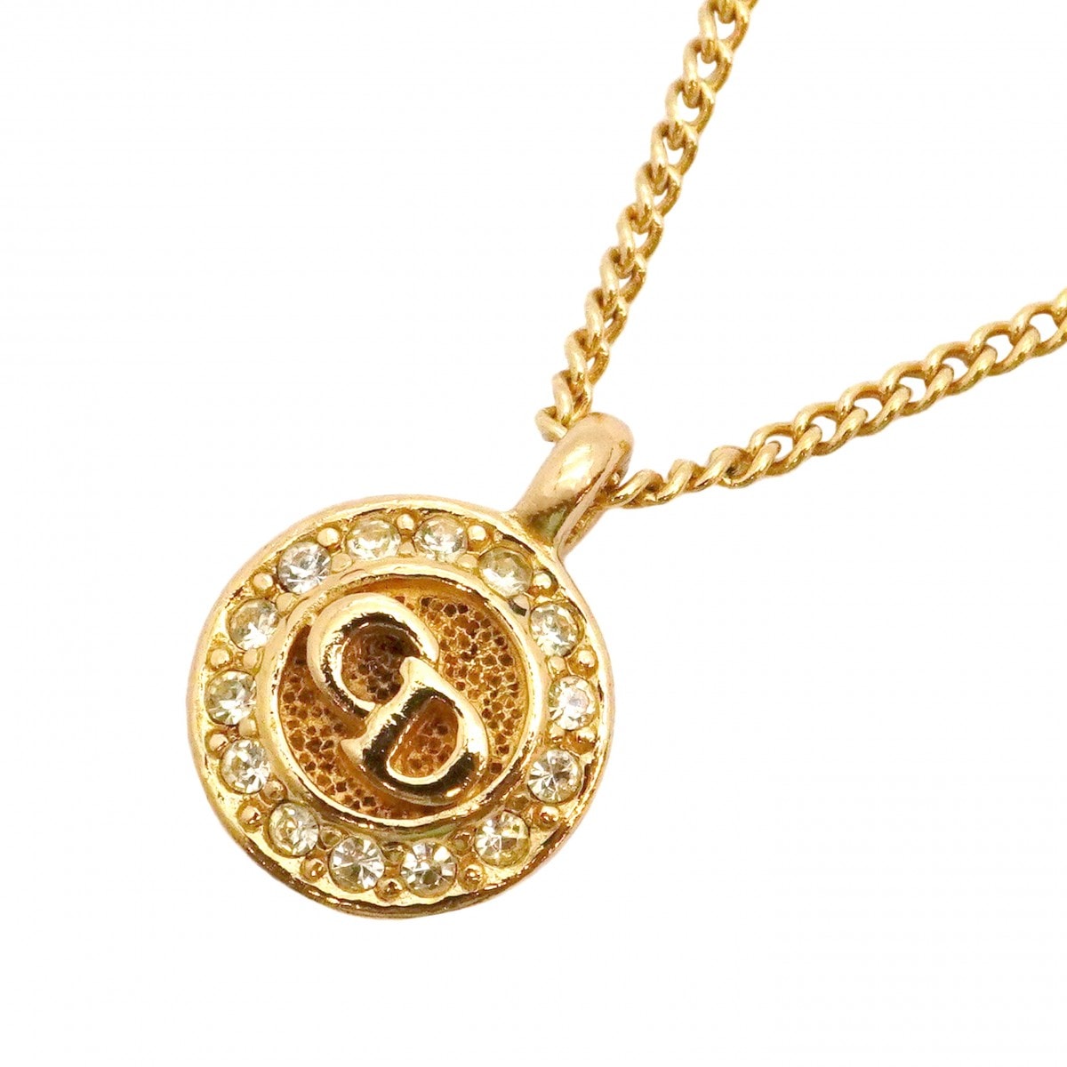 【6jdb0434-k】クリスチャンディオール ネックレス CDロゴ 丸型 サークル GPメッキ ラインストーン ゴールド【中古】レディース