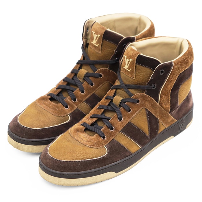 【美品】LOUIS VUITTON ルイ・ヴィトン ハイカットスニーカー サイズ 8 1/2 メンズ トライブライン LV スウェード シューズ 革 靴 ブラウン 茶色