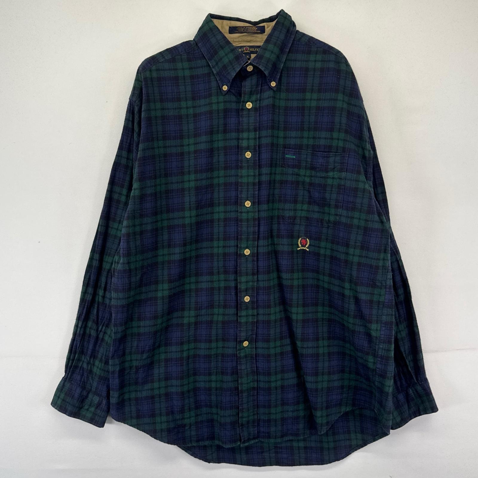 古着 トミーヒルフィガー TOMMY HILFIGER 長袖シャツ ボタンダウン ワンポイント 胸ポケット ネルシャツ M ネイビー系 チェック メンズ