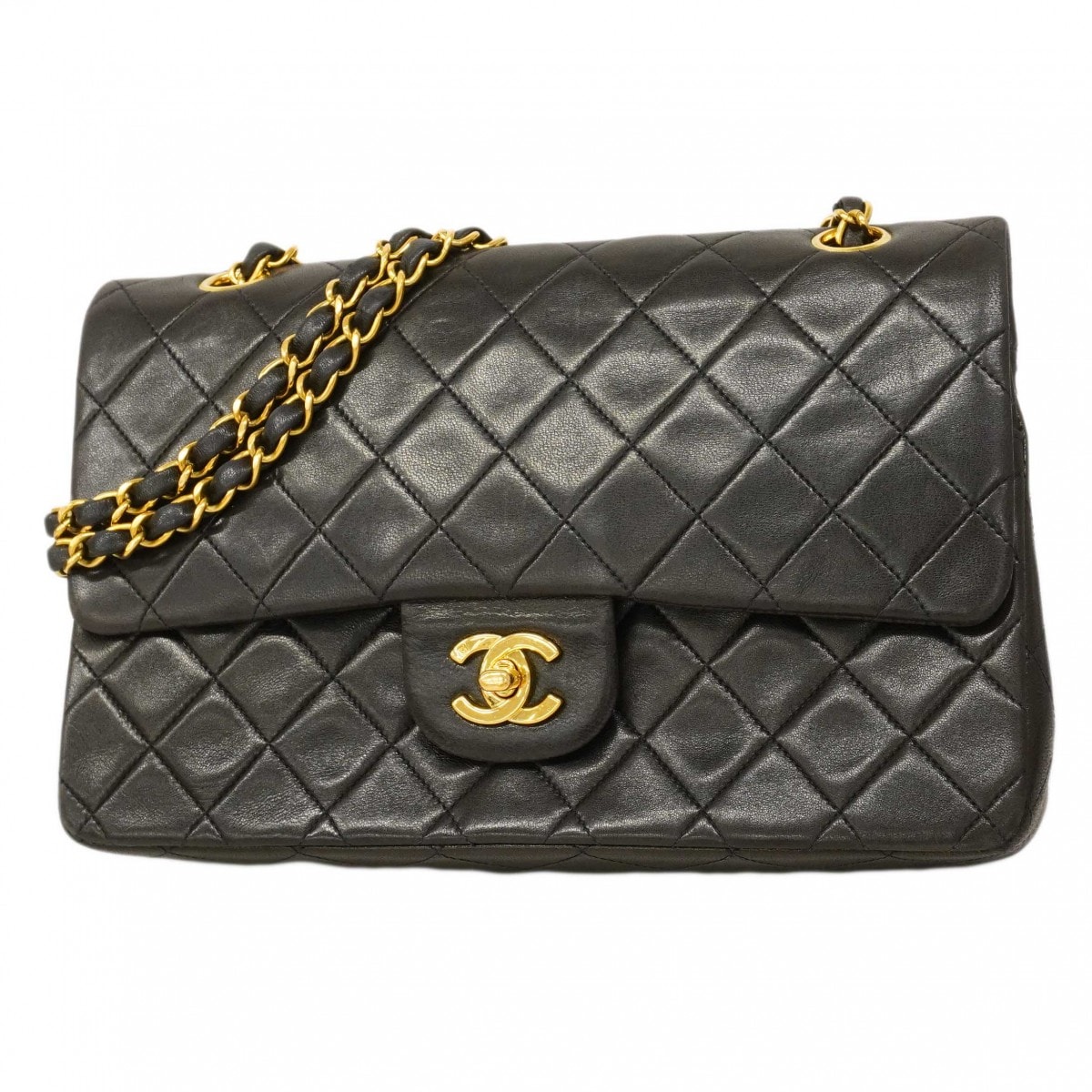 【6dd5125】シャネル ショルダーバッグ マトラッセ Wフラップ Wチェーン ラムスキン ブラック ゴールド金具【中古】レディース