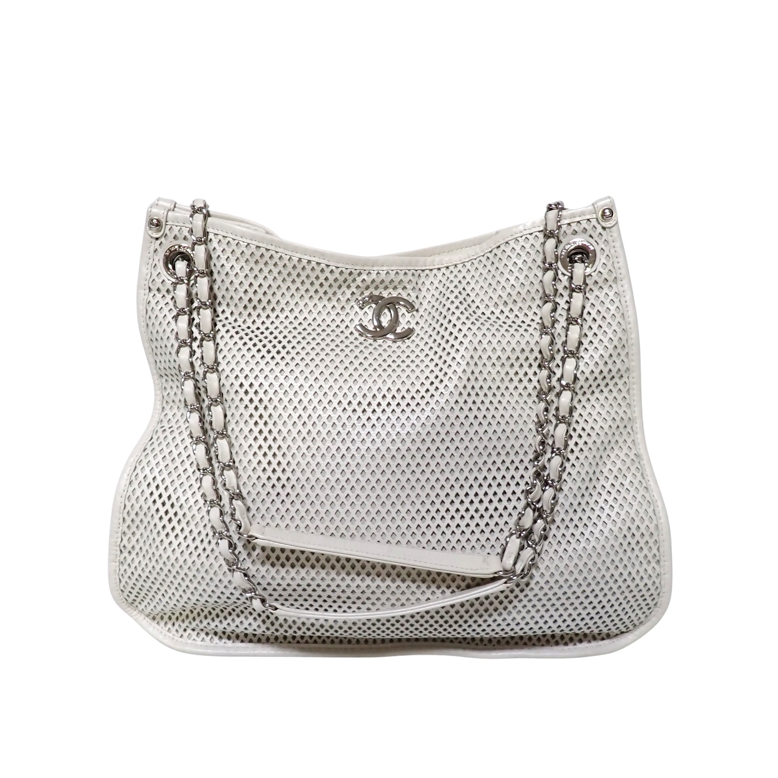 CHANEL シャネル ココマーク メッシュ パンチング チェーンショルダー ホワイト レディース トートバッグ