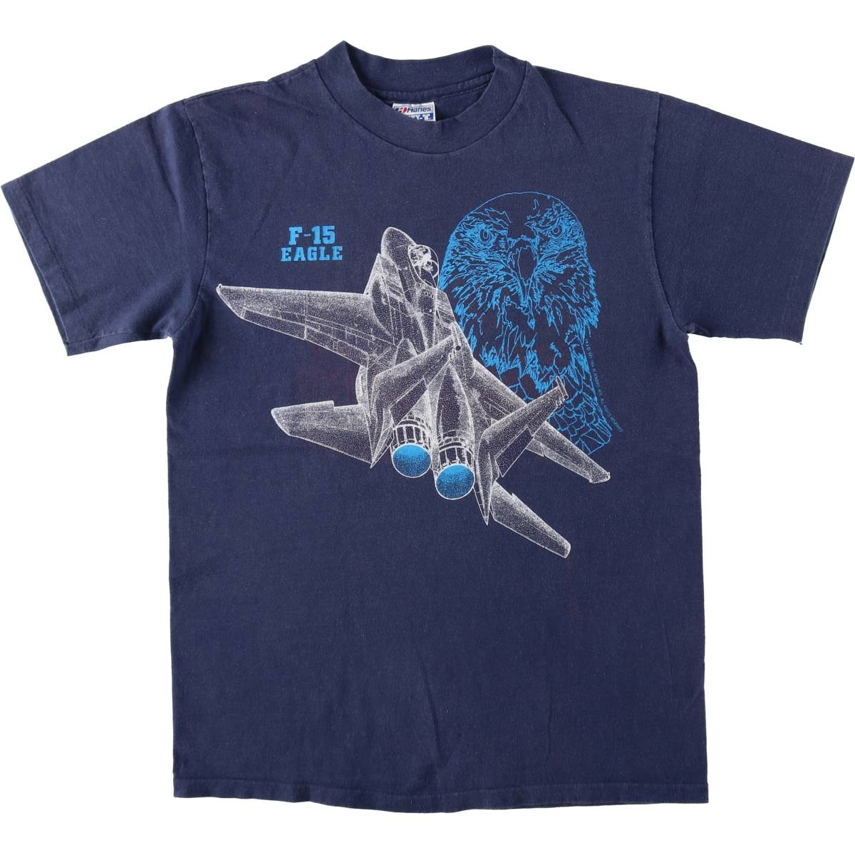 古着 80年代 ヘインズ Hanes BEEFY-T 青タグ F-15 EAGLE 戦闘機柄 鷲柄 イーグル柄 アドバタイジング HONEYWELL ハネウェル プリントTシャツ USA製 レディースM相当/eaa635585