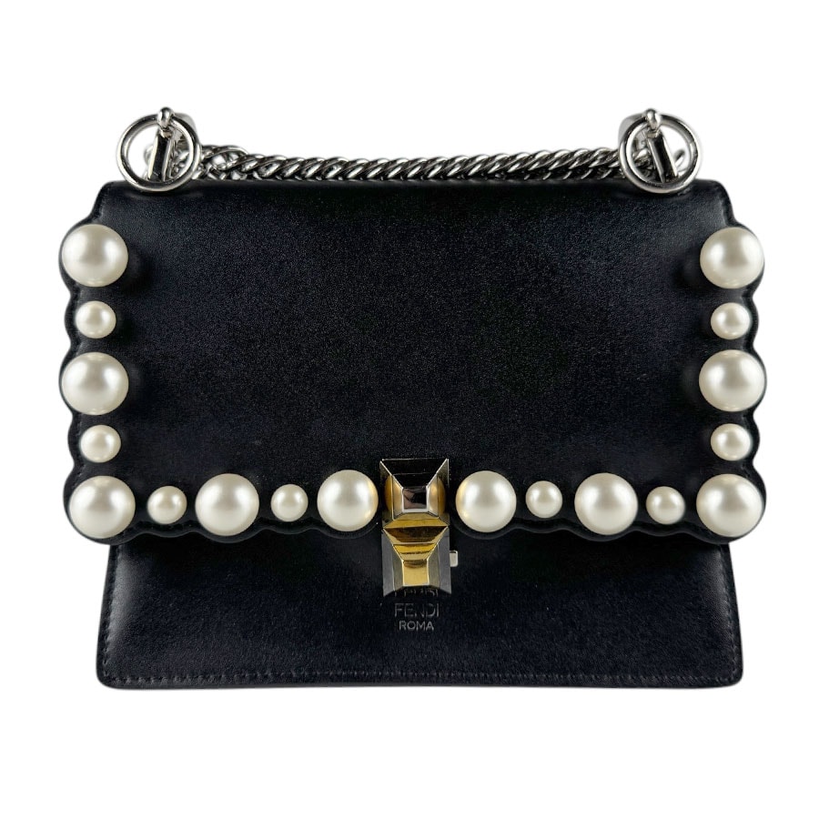 フェンディ FENDI ショルダーバッグ キャナイ ミニ レザー/メタル ブラック レディース 8M0381 A0ZR【中古】 z9310