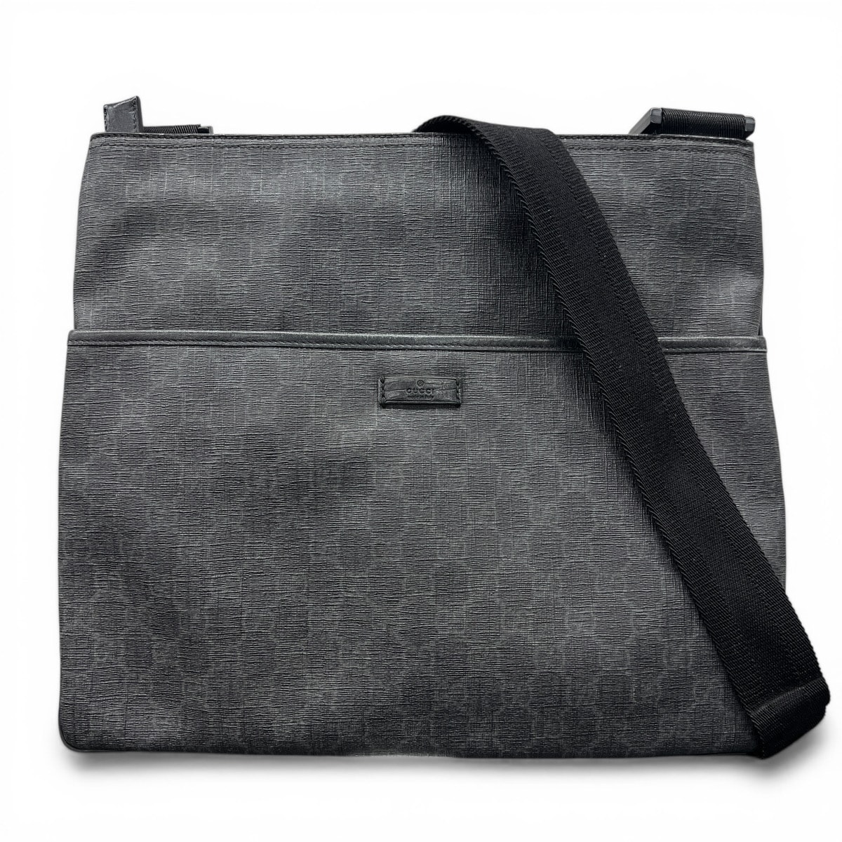 GUCCI 美品 グッチ GGスプリーム 162904 ショルダーバッグ PVC レザー ブラック グレー メッセンジャーバッグ クロスボディ 斜め掛け GGプラス ABランク 中古 鑑定済 グッチバッグ