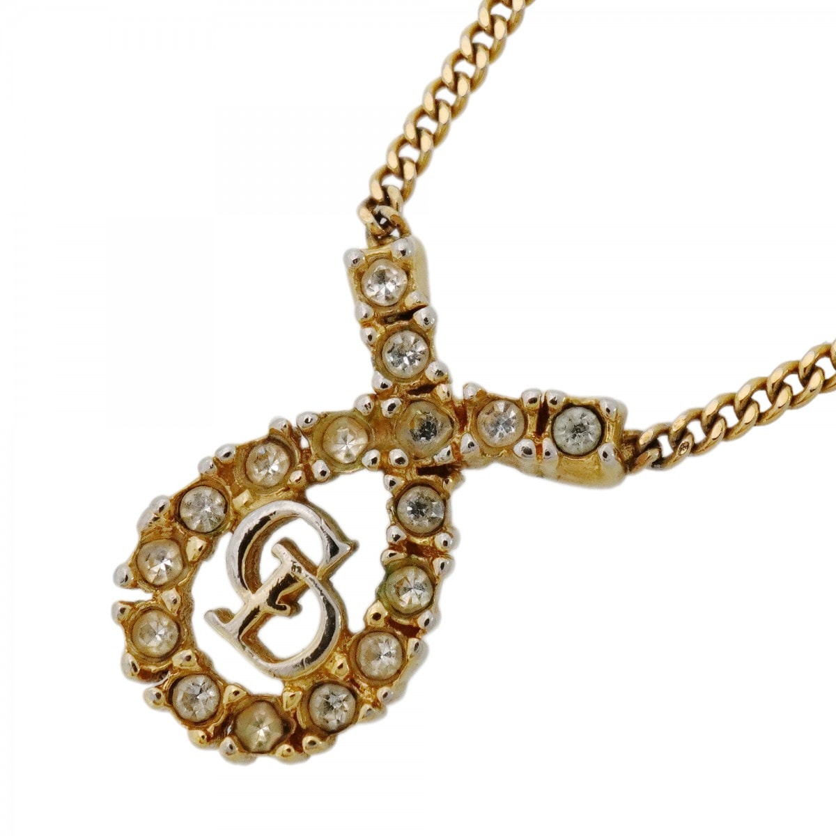 【6jdb0375】クリスチャンディオール ネックレス ディオールロゴ GPメッキ ラインストーン ゴールド【中古】レディース
