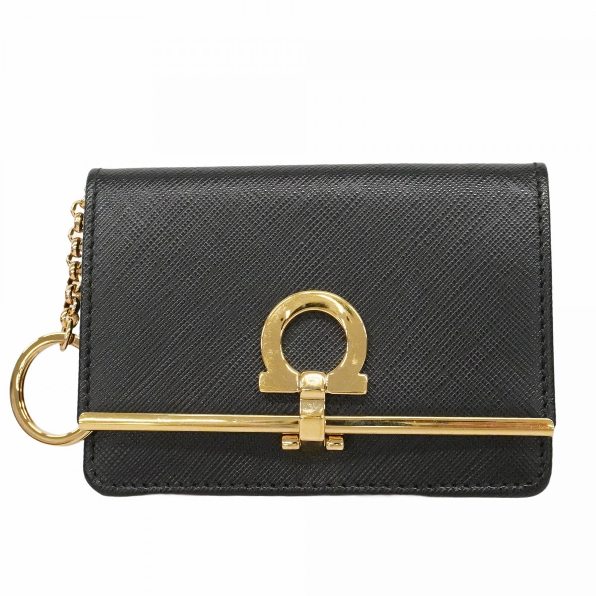 【6dd4361】サルヴァトーレフェラガモ コインケース ガンチーニ レザー ブラック ゴールド金具【中古】レディース