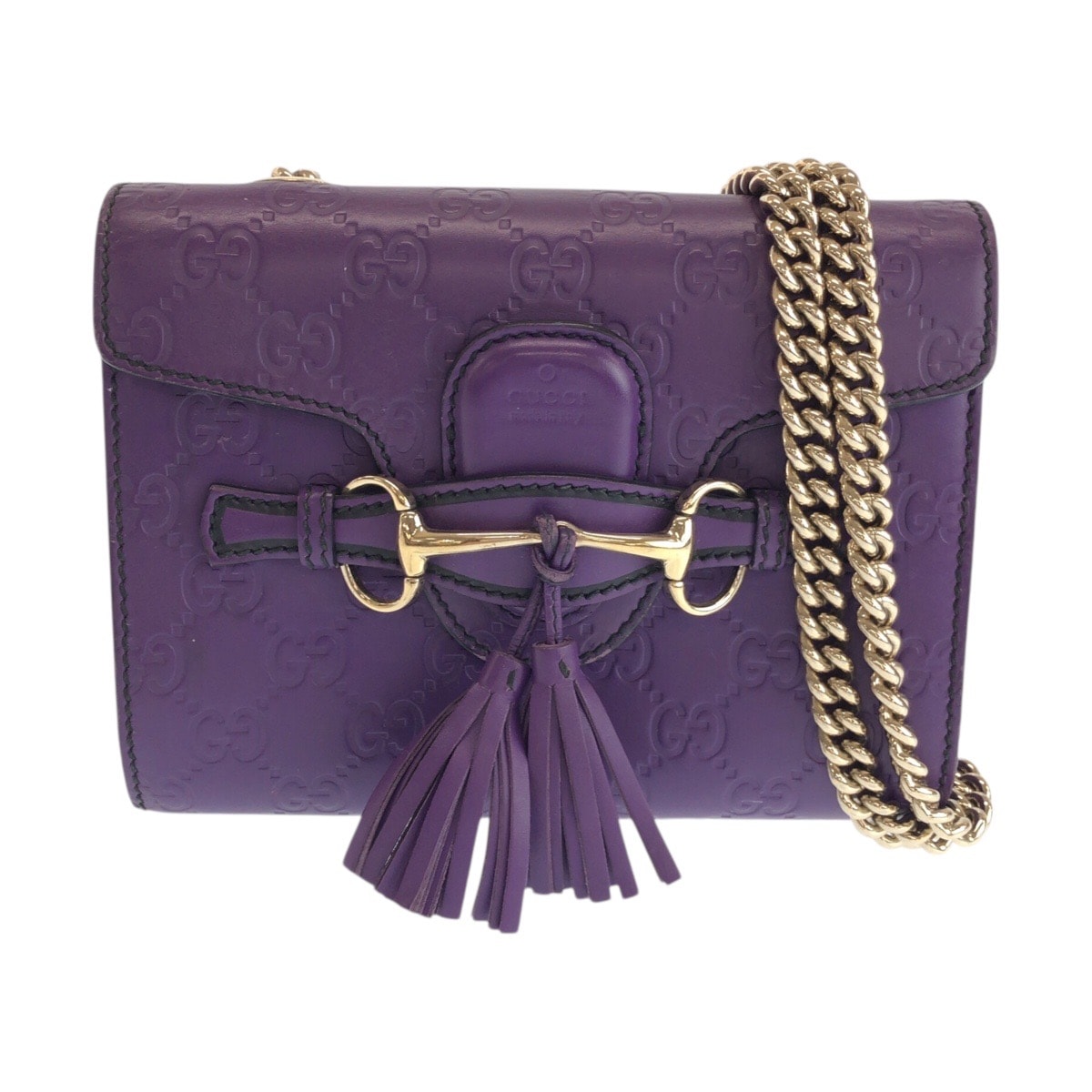 美品 GUCCI グッチ グッチシマ ホースビット エミリー パープル ゴールド金具 レザー ショルダーバッグ チェーンショルダーバッグ 601387 【中古】