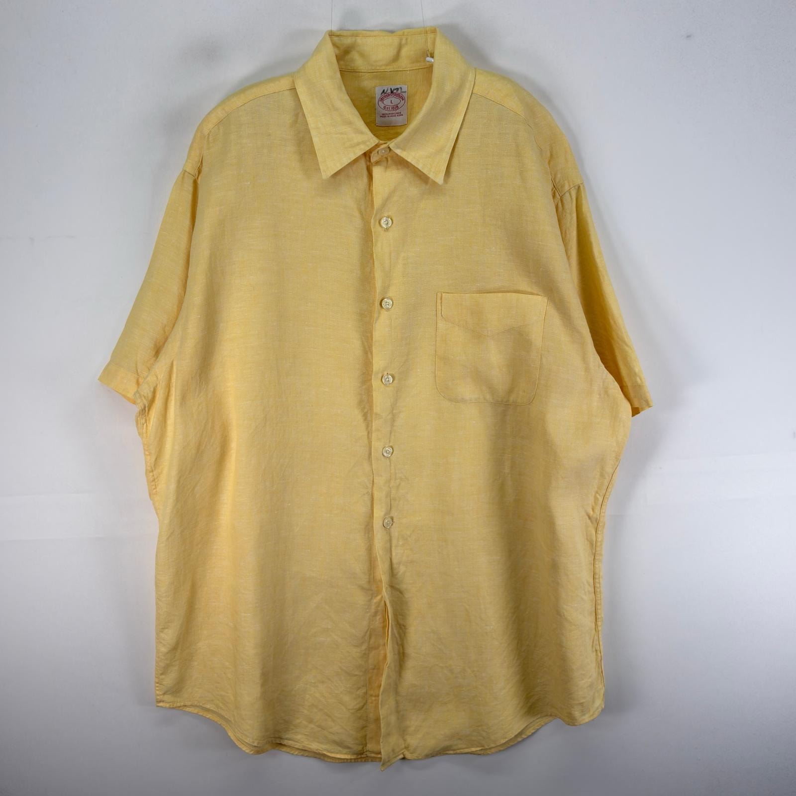 古着 ブルックスブラザーズ Brooks Brothers 半袖シャツ リネン L イエロー系 無地 メンズ
