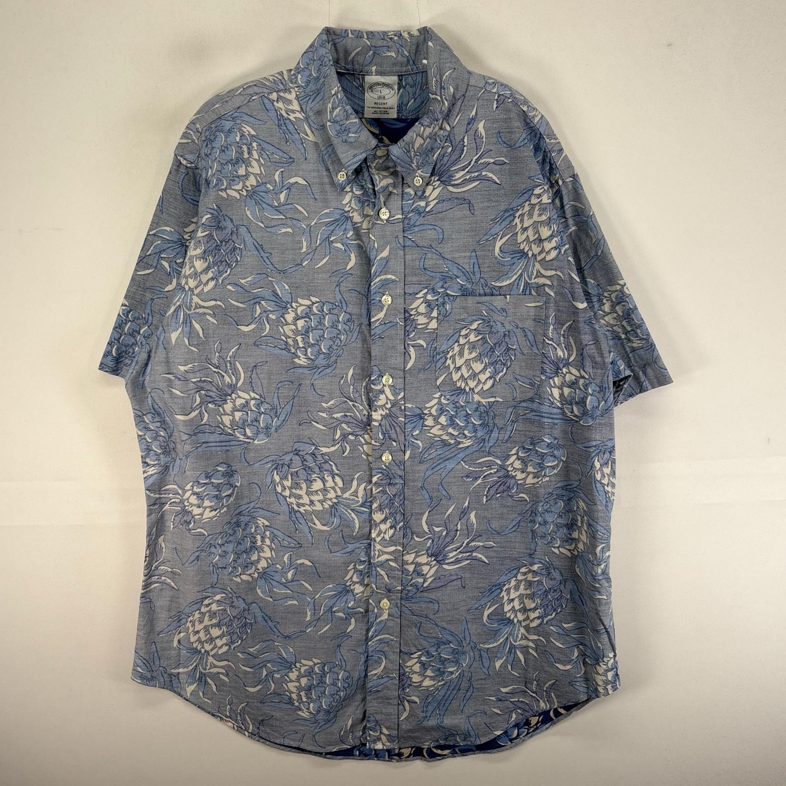 古着 ブルックスブラザーズ Brooks Brothers 半袖シャツ ボタンダウン 花柄 L ブルー系 総柄 メンズ