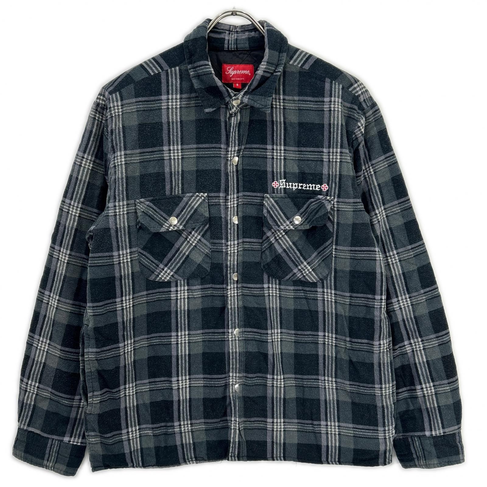 シュプリーム ×Independent 17AW ネイビー Quilted Flannel チェックジャケット S