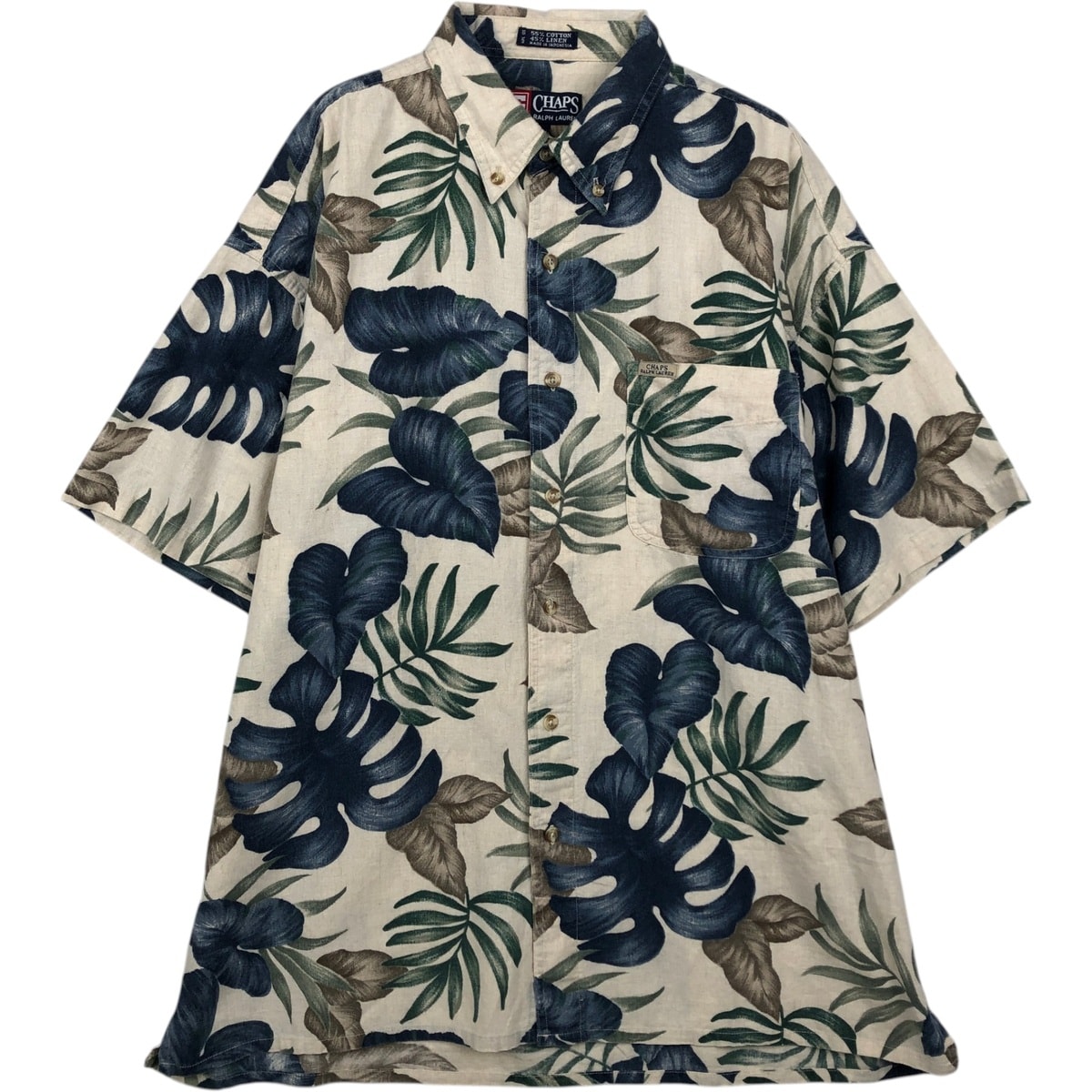 古着 ラルフローレン Ralph Lauren CHAPS チャップス 総柄 リーフ柄 ボタンダウン ハワイアンアロハシャツ ボックスシャツ メンズL相当/eaa635933