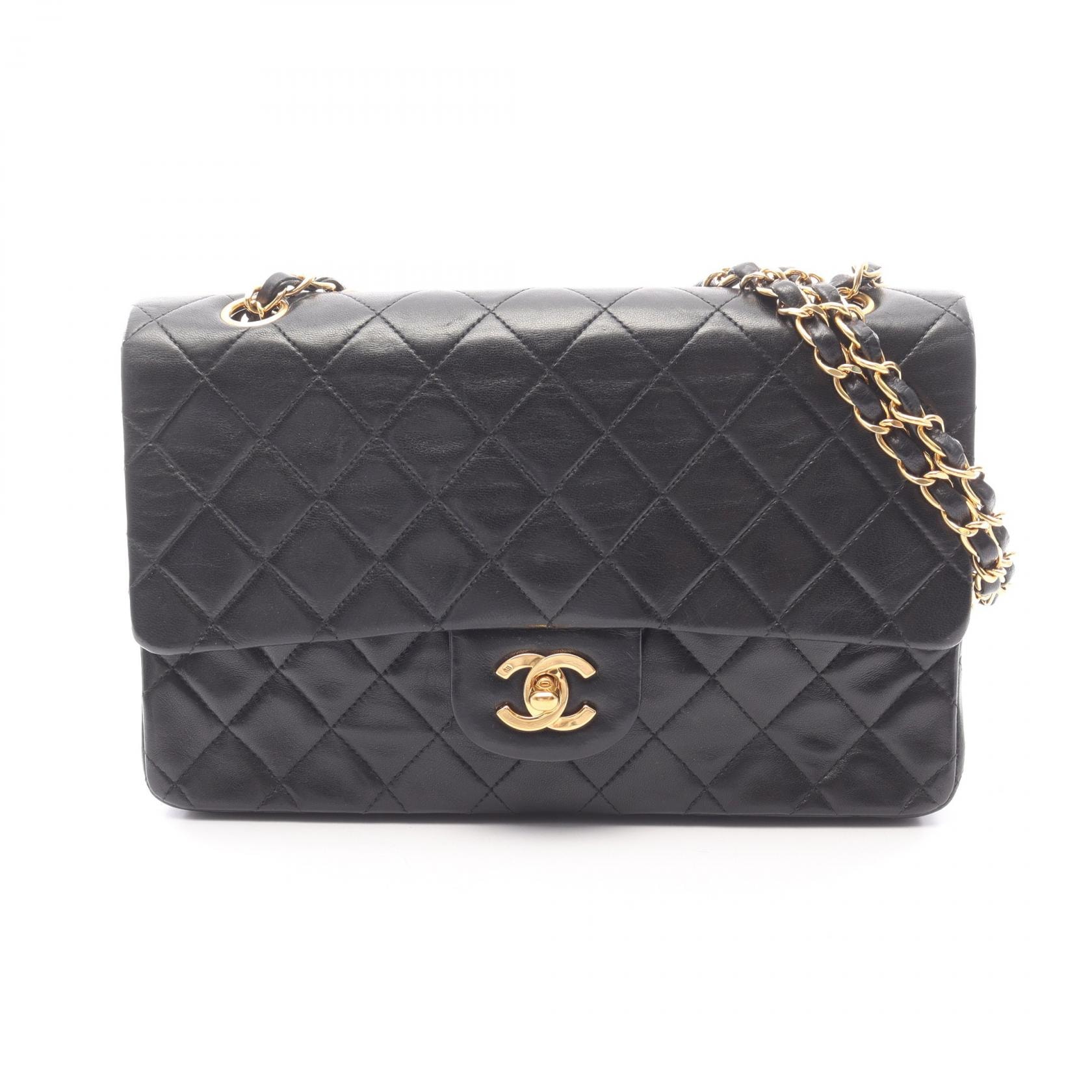 シャネル CHANEL マトラッセ Wフラップ ヴィンテージ ショルダーバッグ バッグ ラムスキン(羊革) レディース ブラック系 【中古】